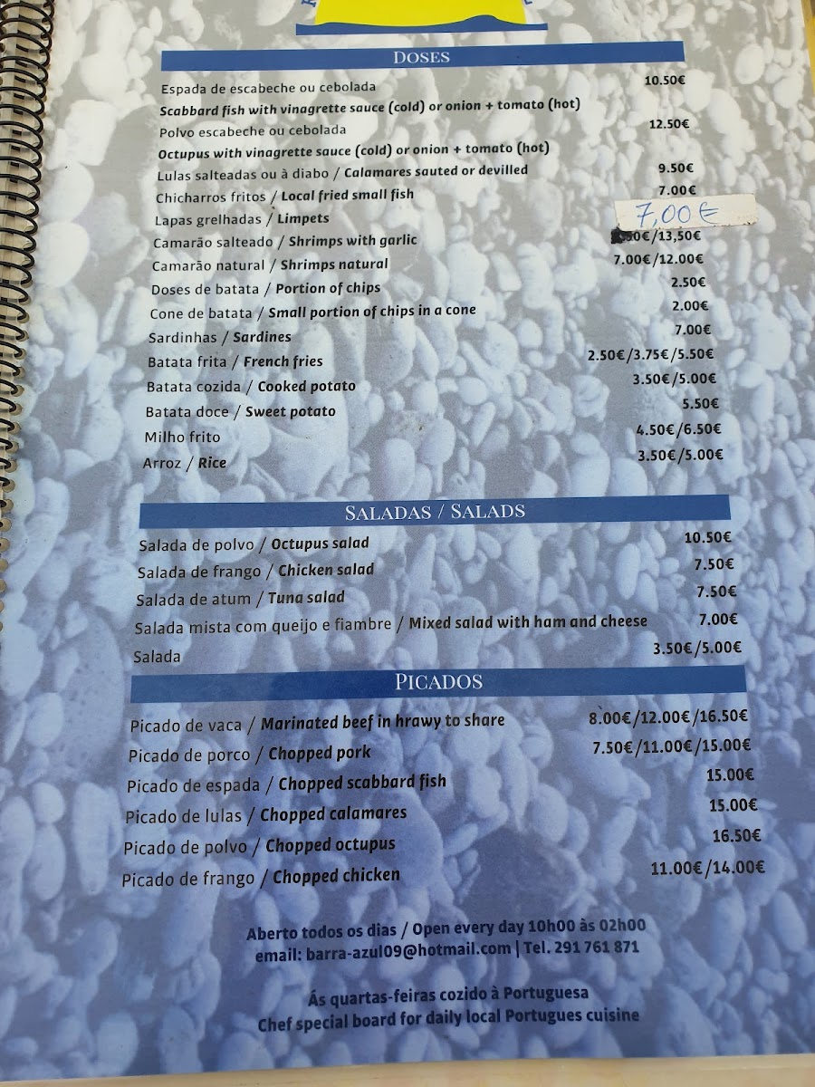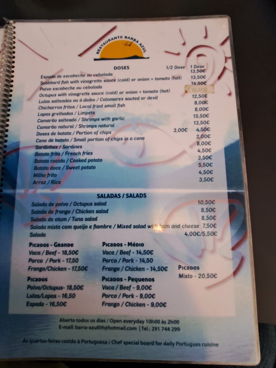 Introducing the Menu at Restaurante Barra Azul